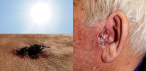 Den största riskfaktorn för skivepitelcancer är stor solexponering. Mer än 60% av all skivepitelcancer utvecklas från aktinisk keratos, som brukar kallas ett förstadium till skivepitelcancer.