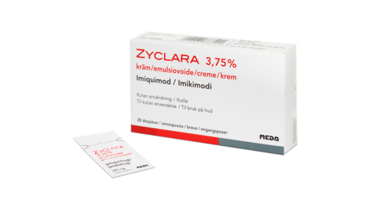 Zyclara är en topikal imikvimod kräm på 3,75 % som stimulerar kroppens eget immunförsvar i huden att göra sig av med de skadade celler som utvecklats till aktinisk keratos.